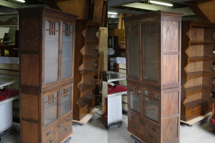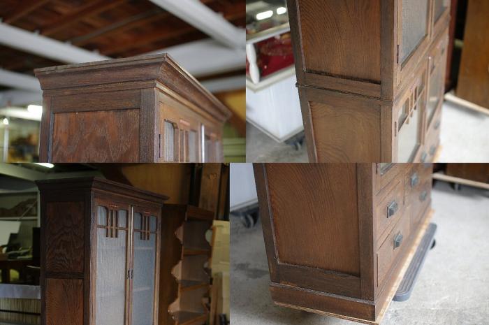 すべて無垢材て作られています。金具類は真鍮製です。棚板は取り外し可能です。