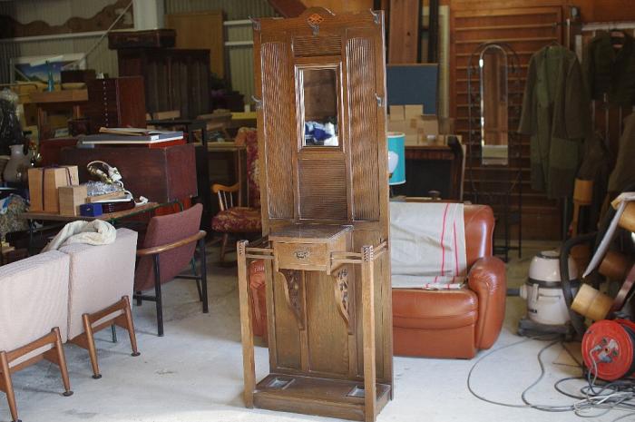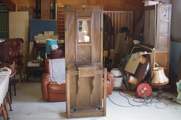 大正時代に建てられた洋館で使われていたモダンなハンガー&鏡付きの傘立てです。