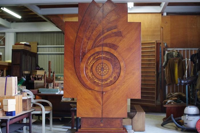 意匠と象嵌が素晴らしいキャビネット鍵付きです
