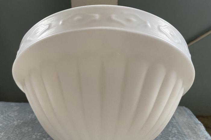 Top > Works > 古家具 古道具 > モダンな電傘 電笠 乳白色ガラス 硝子 菊紋ペンダントライト シェード 時代照明▼大正浪漫昭和レトロ