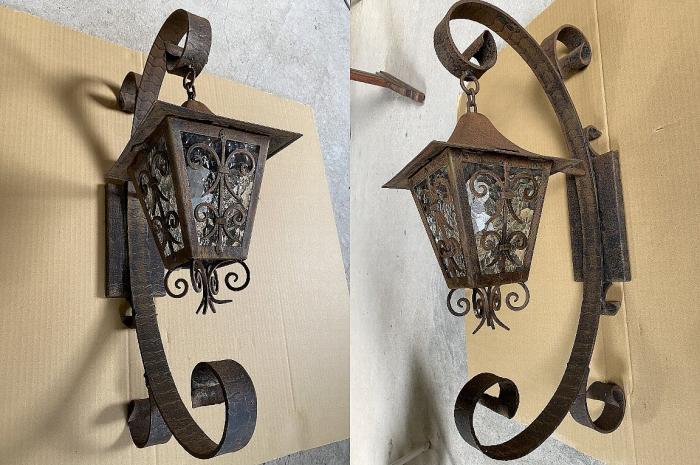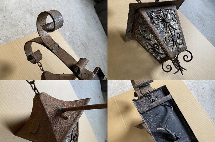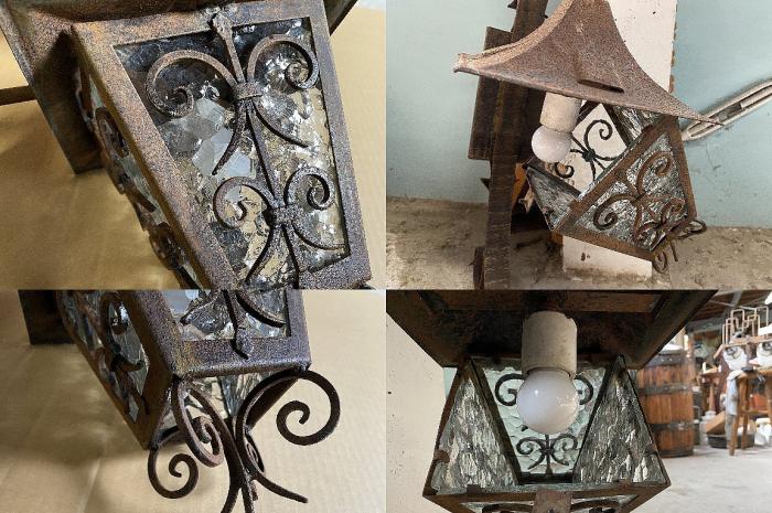 Top > Works > 古家具 古道具 > レトロモダンな鉄製ブラケットライト/ウォールライト 壁掛け照明/玄関灯/屋外灯/アイアン照明/店舗用外灯/屋外用ライト▼洋館照明レトロガラス
