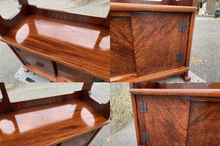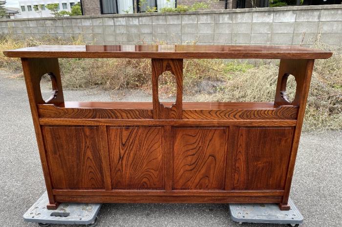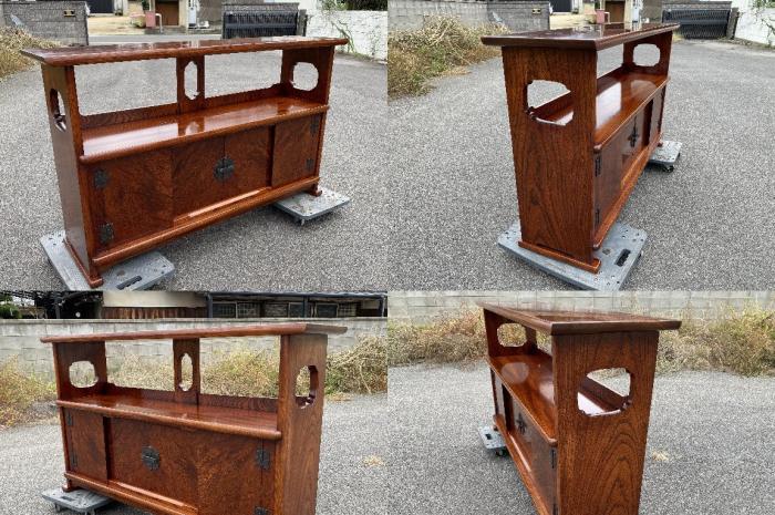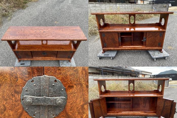 すべて欅材で作られたサイドボードです。流麗な杢目が見事な欅材は、無垢材と突板が使われています。